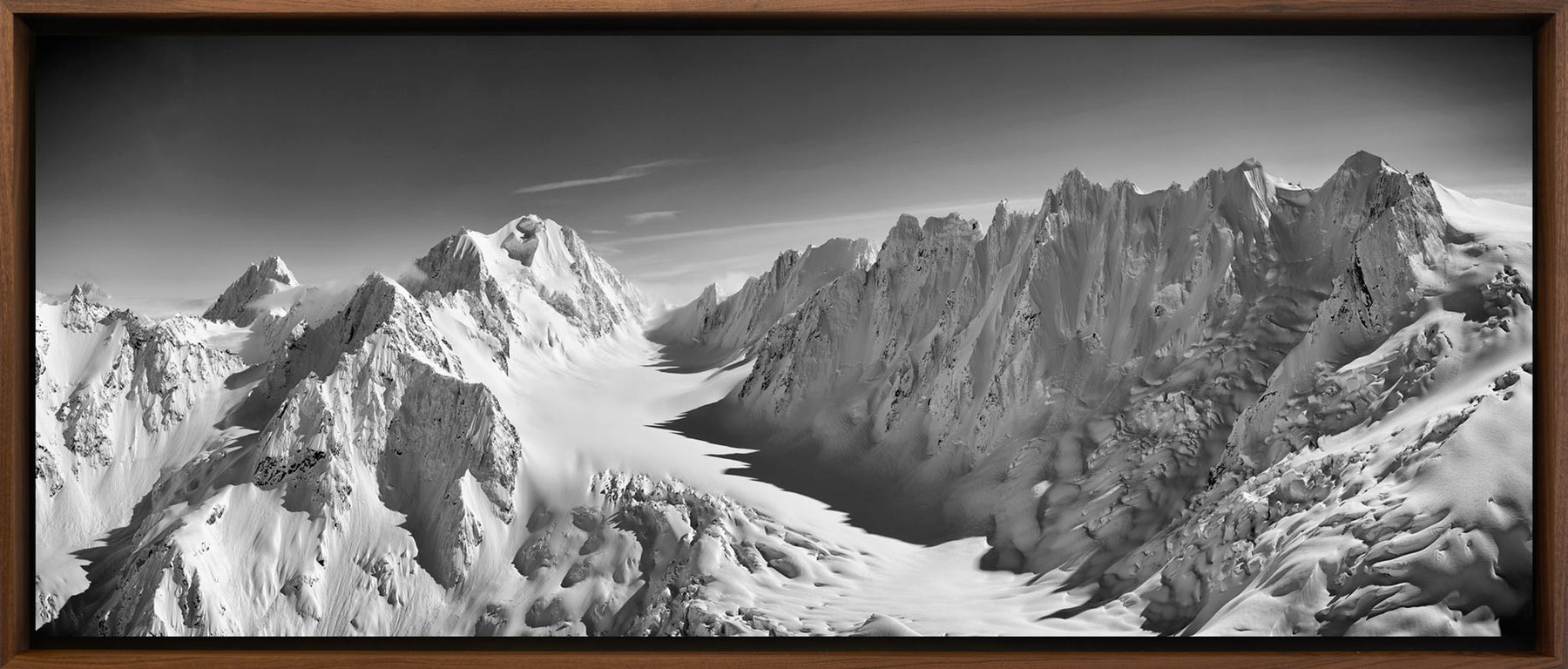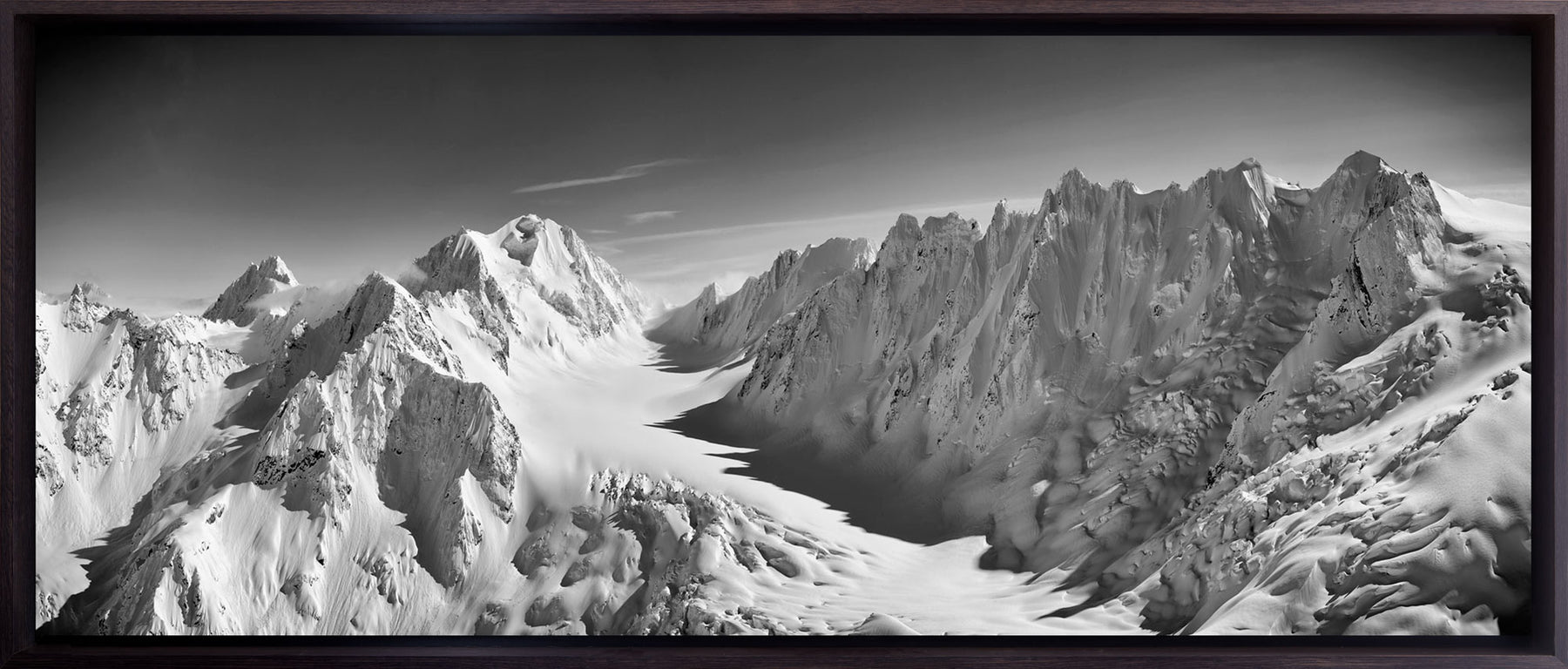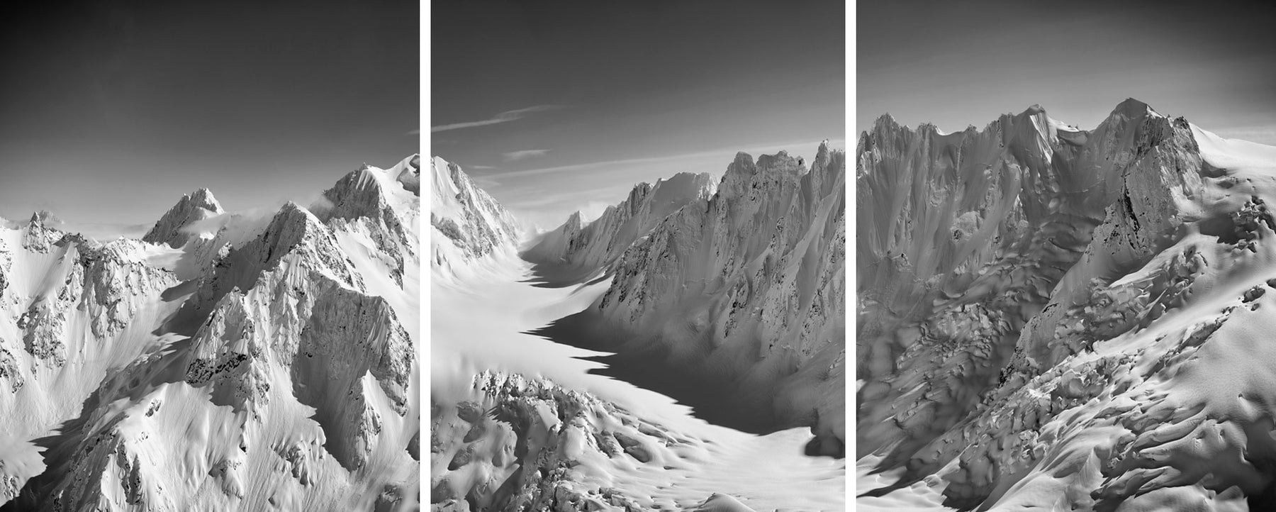This is a breathtaking panoramic view of the Berthoud Glacier in the Chilkat range in winter.